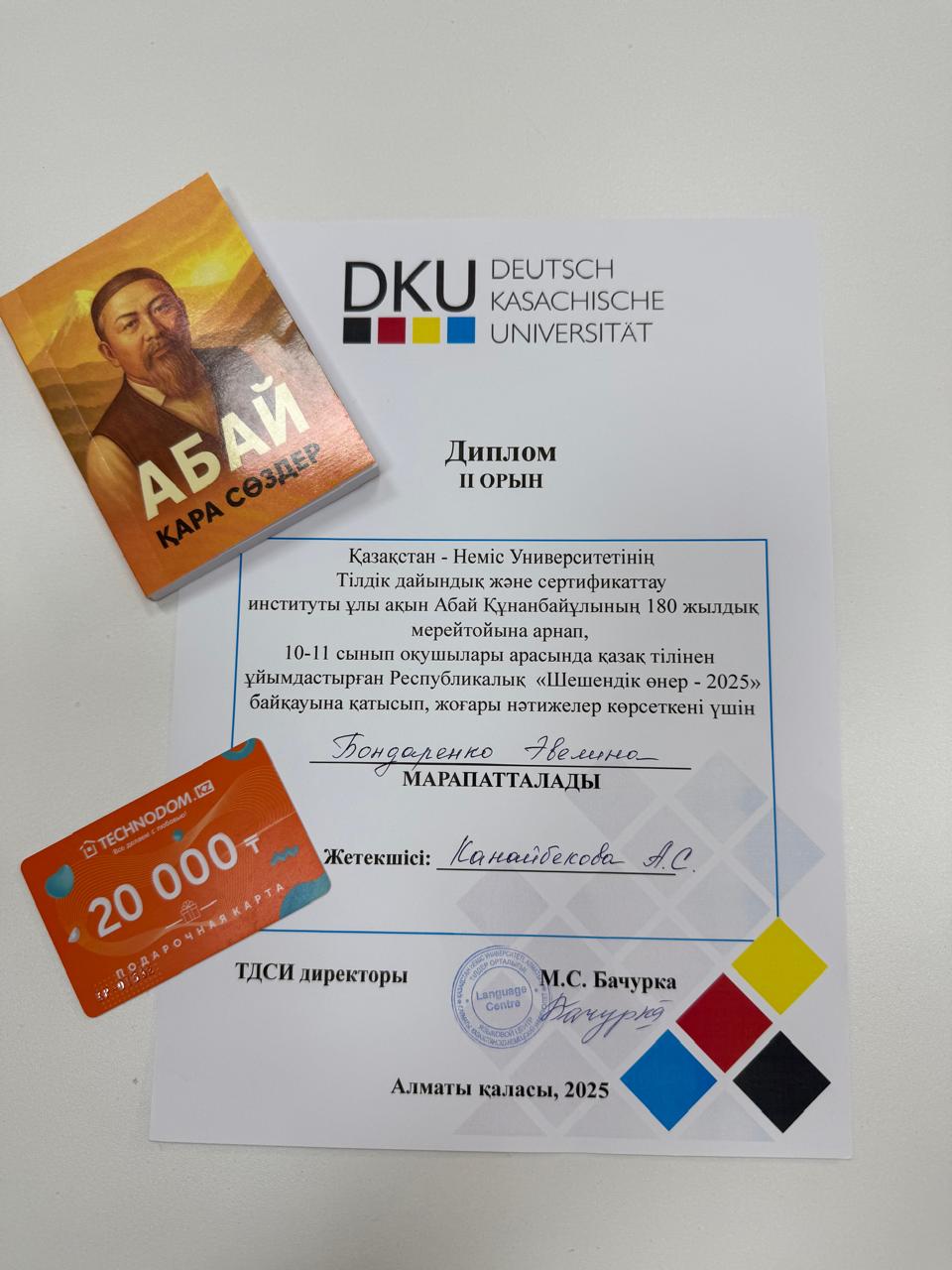 2025 жылдың 14 қарашасында Қазақстан-Неміс университетінде Абай Құнанбайұлының 180 жылдығына арналған қазақ тіліндегі «Шешендік өнер – 2025» атты Республикалық конкурс өтті.