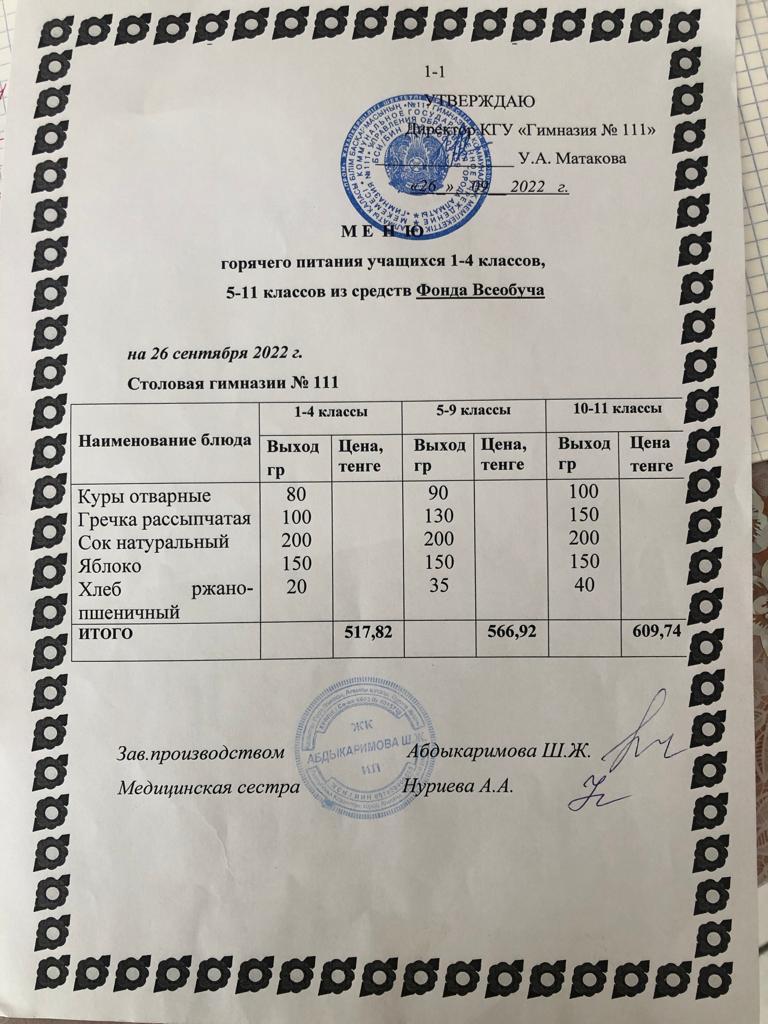 КГУ «Гимназия №111» Управления образования г.Алматы
