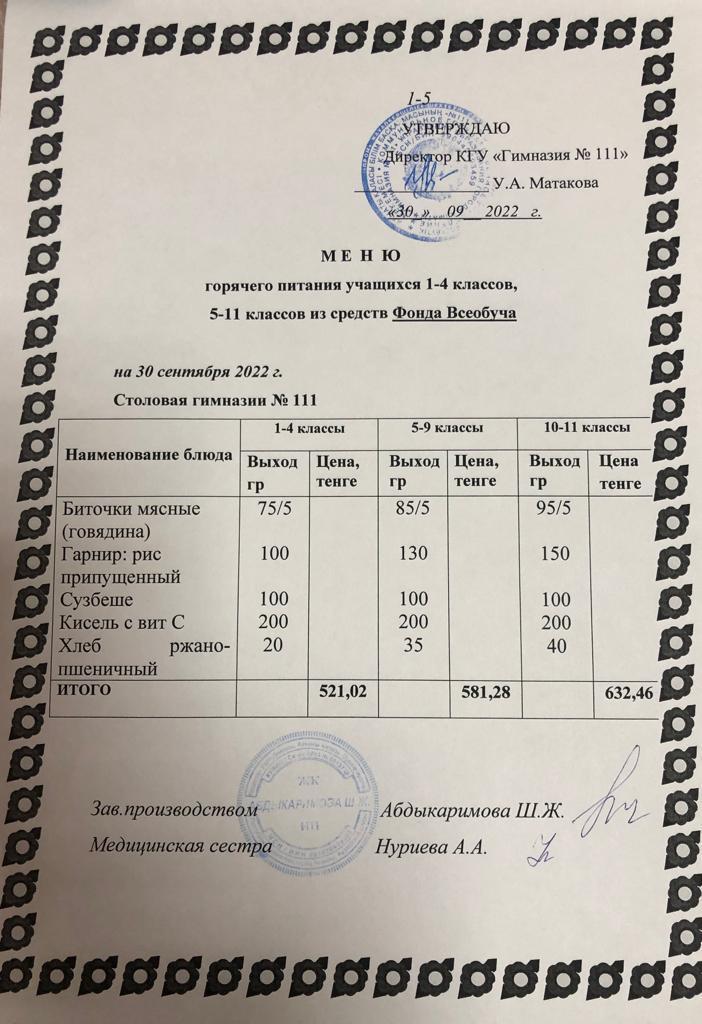 КГУ «Гимназия №111» Управления образования г.Алматы