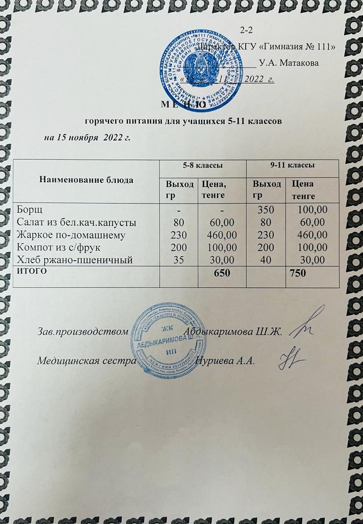 КГУ «Гимназия №111» Управления образования г.Алматы