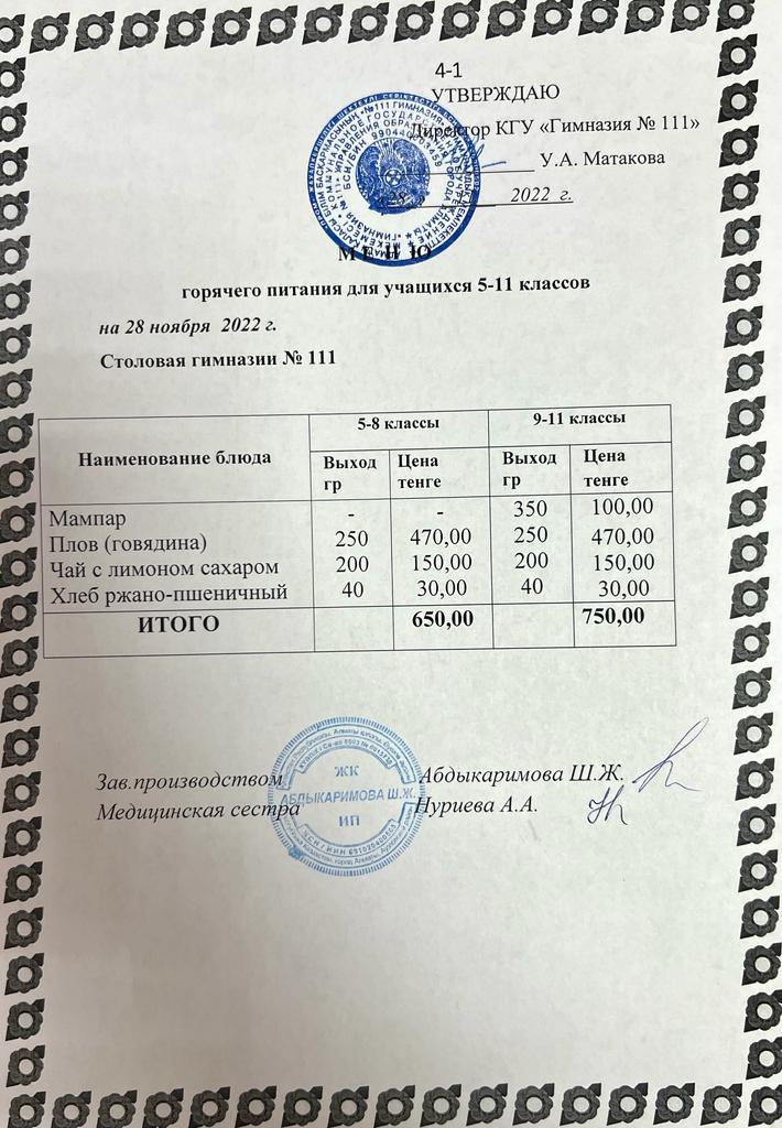 КГУ «Гимназия №111» Управления образования г.Алматы