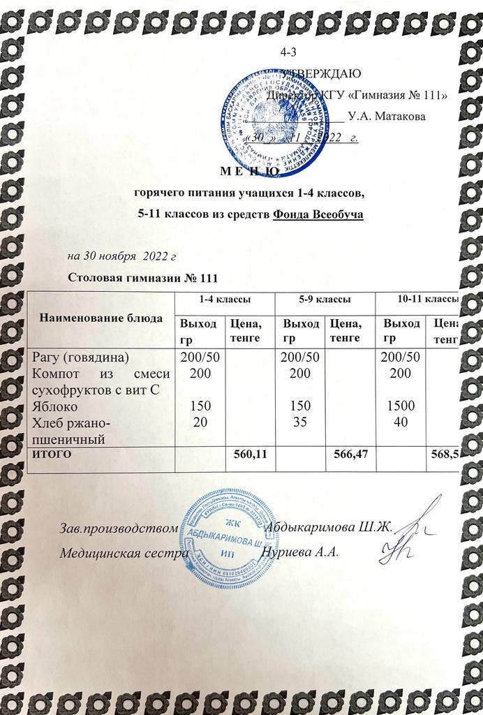 КГУ «Гимназия №111» Управления образования г.Алматы