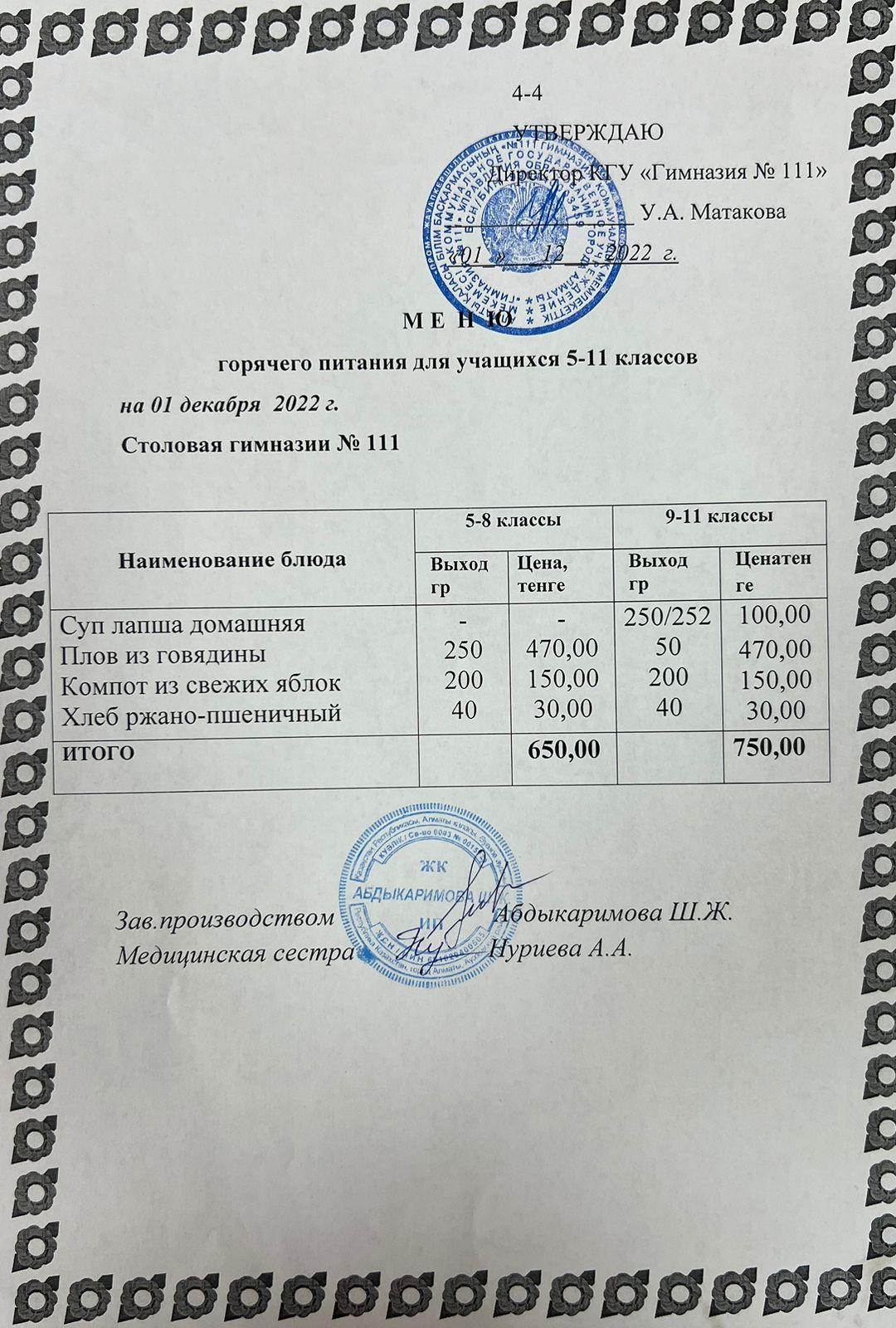 КГУ «Гимназия №111» Управления образования г.Алматы