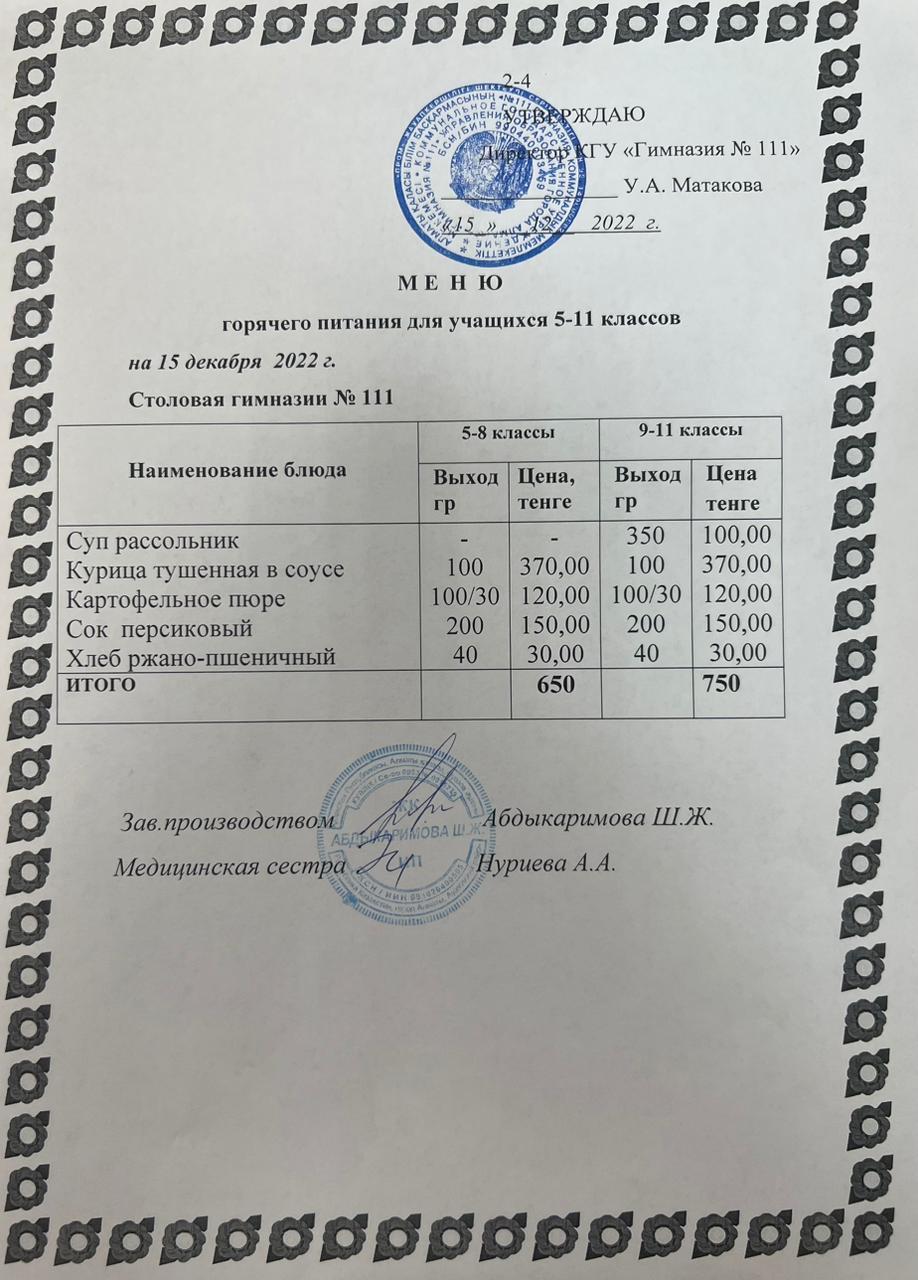 КГУ «Гимназия №111» Управления образования г.Алматы