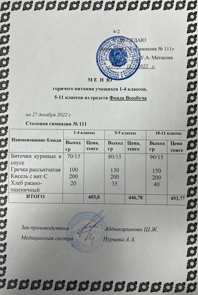 КГУ «Гимназия №111» Управления образования г.Алматы