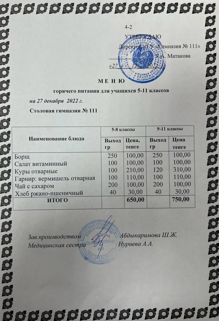 КГУ «Гимназия №111» Управления образования г.Алматы
