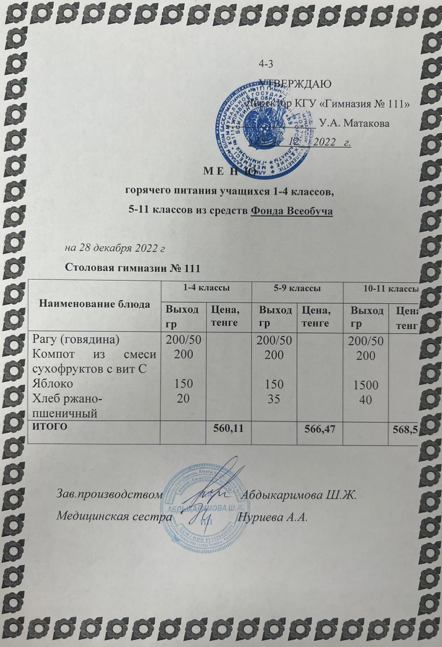 КГУ «Гимназия №111» Управления образования г.Алматы