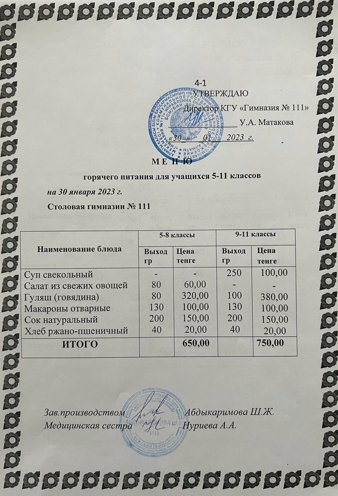 КГУ «Гимназия №111» Управления образования г.Алматы