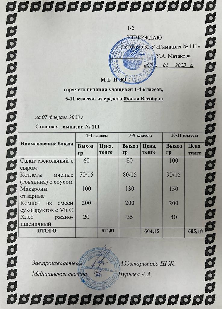 КГУ «Гимназия №111» Управления образования г.Алматы