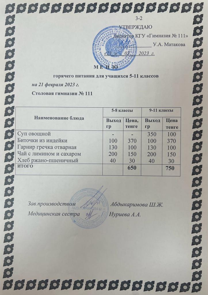 17 ақпан 2023 меню