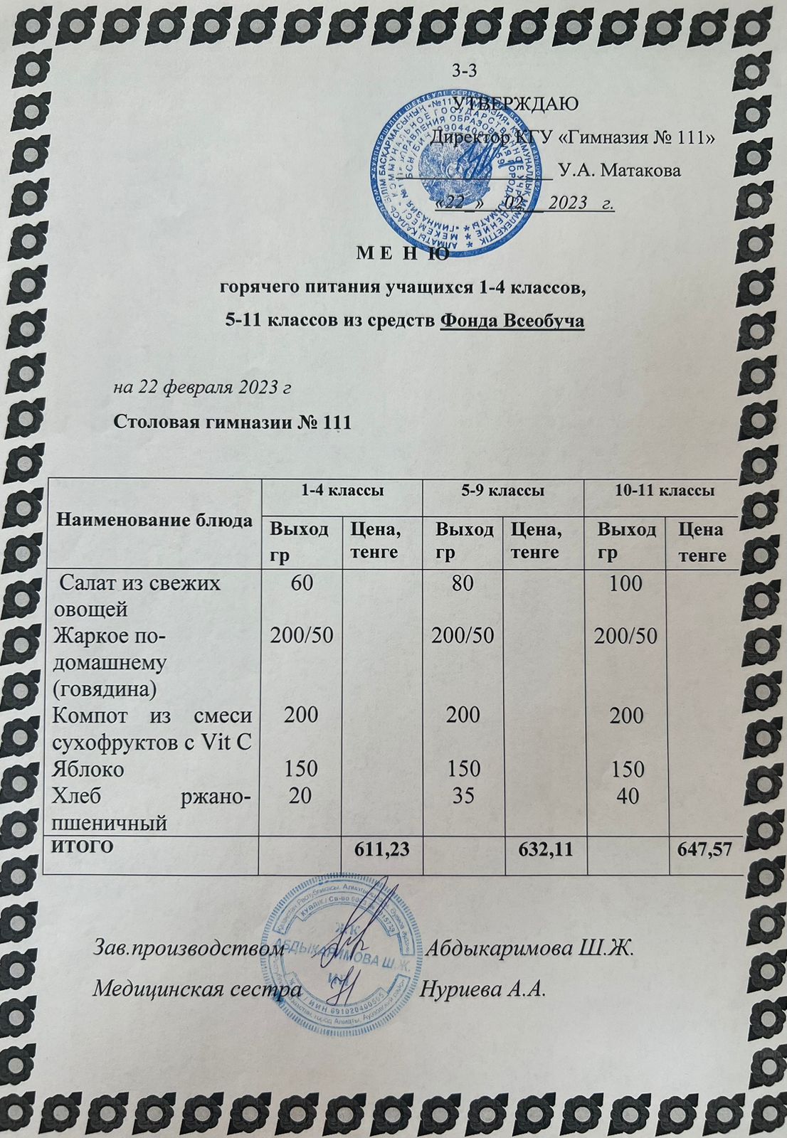 КГУ «Гимназия №111» Управления образования г.Алматы