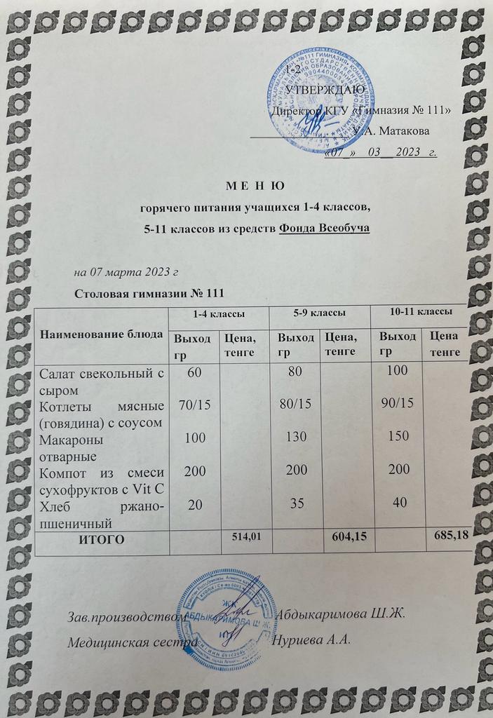 КГУ «Гимназия №111» Управления образования г.Алматы
