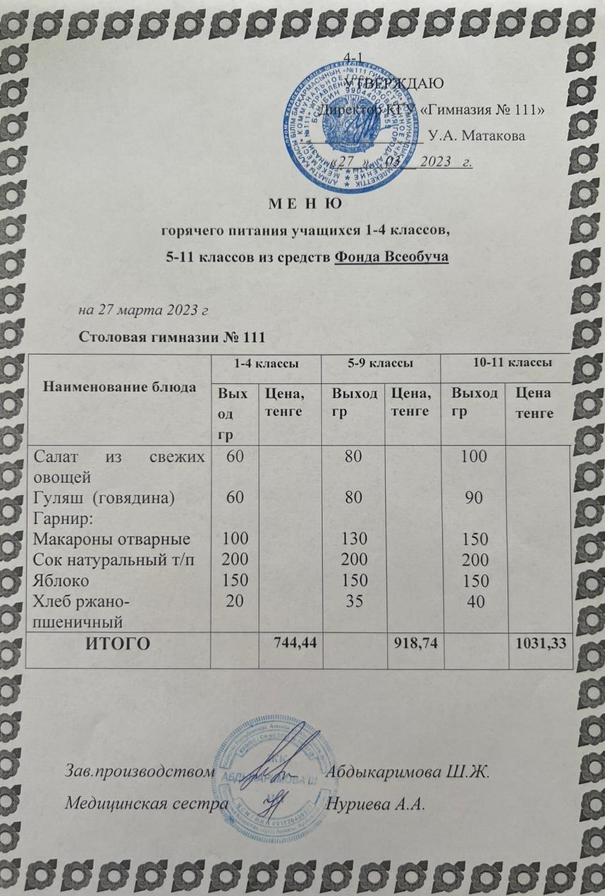 КГУ «Гимназия №111» Управления образования г.Алматы