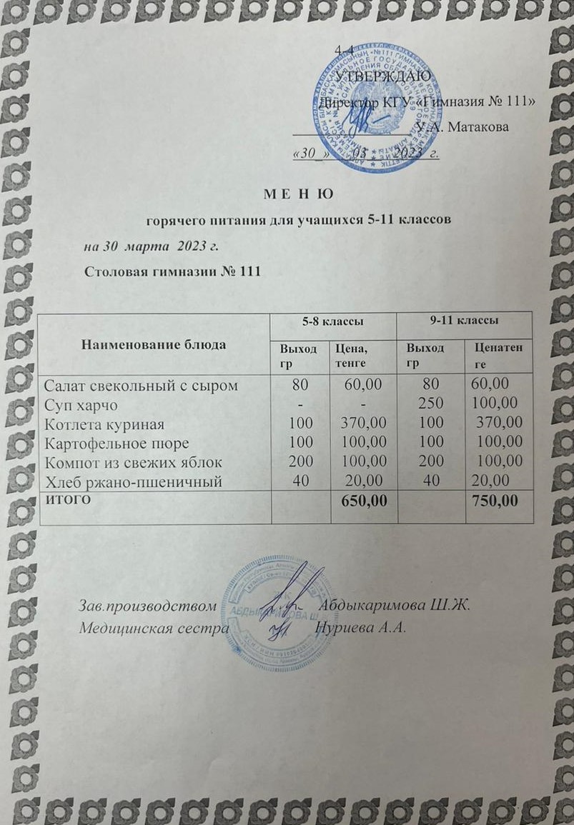 КГУ «Гимназия №111» Управления образования г.Алматы