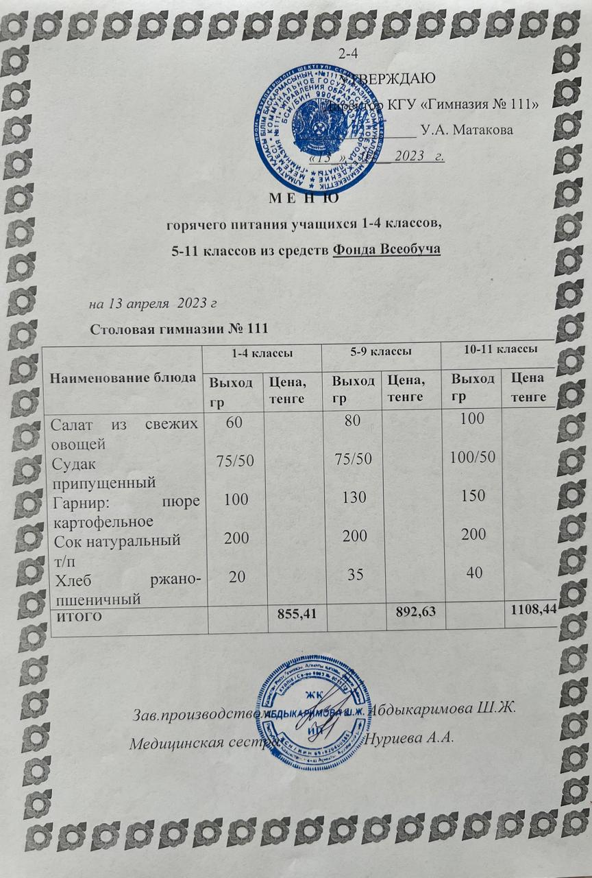 КГУ «Гимназия №111» Управления образования г.Алматы