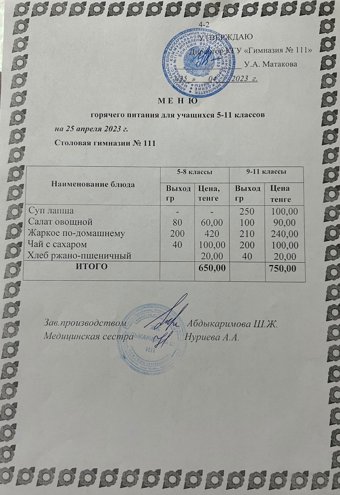 КГУ «Гимназия №111» Управления образования г.Алматы