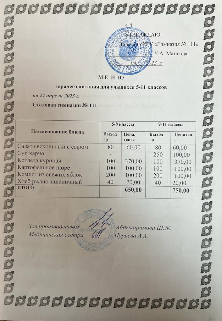 КГУ «Гимназия №111» Управления образования г.Алматы