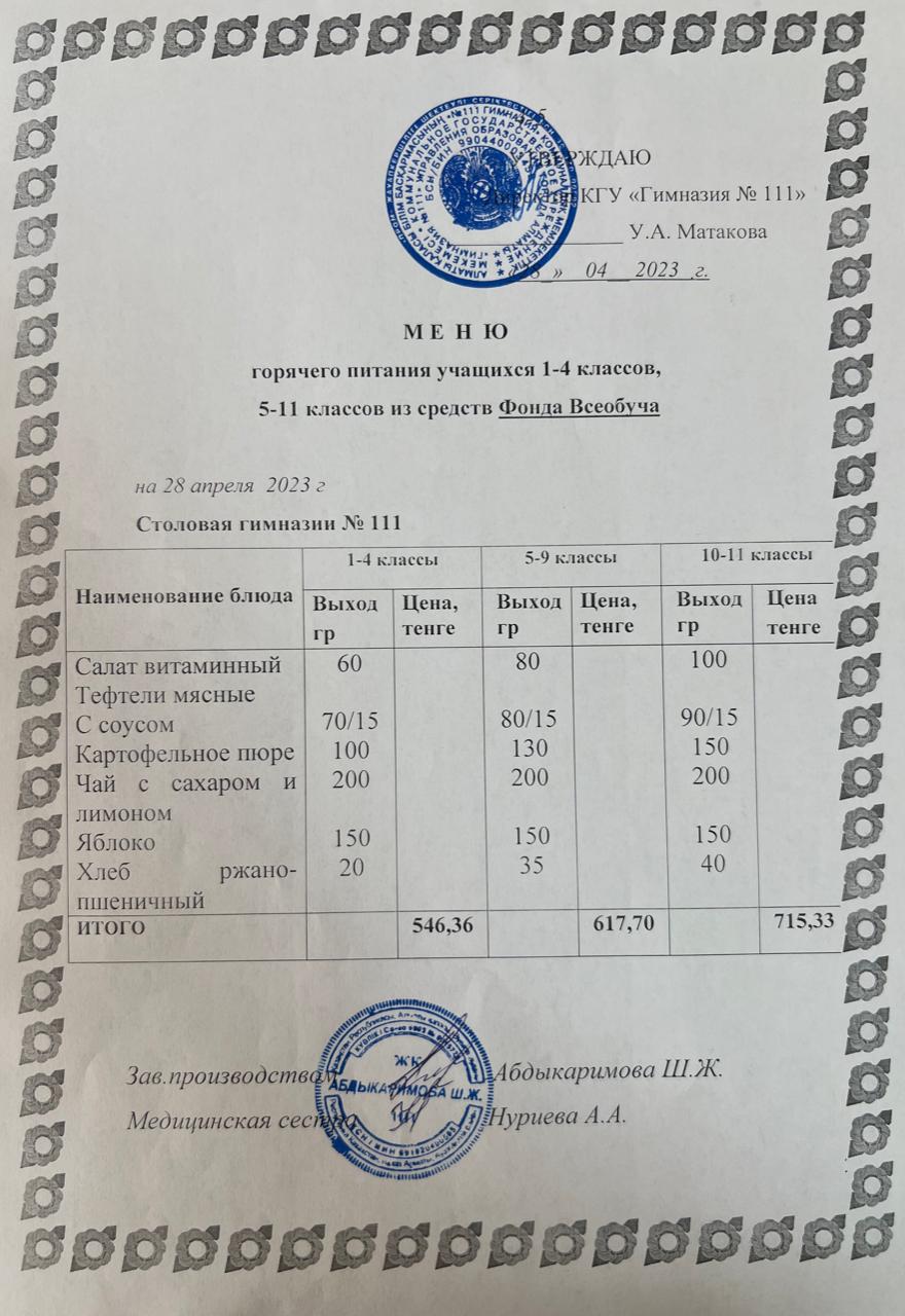 КГУ «Гимназия №111» Управления образования г.Алматы