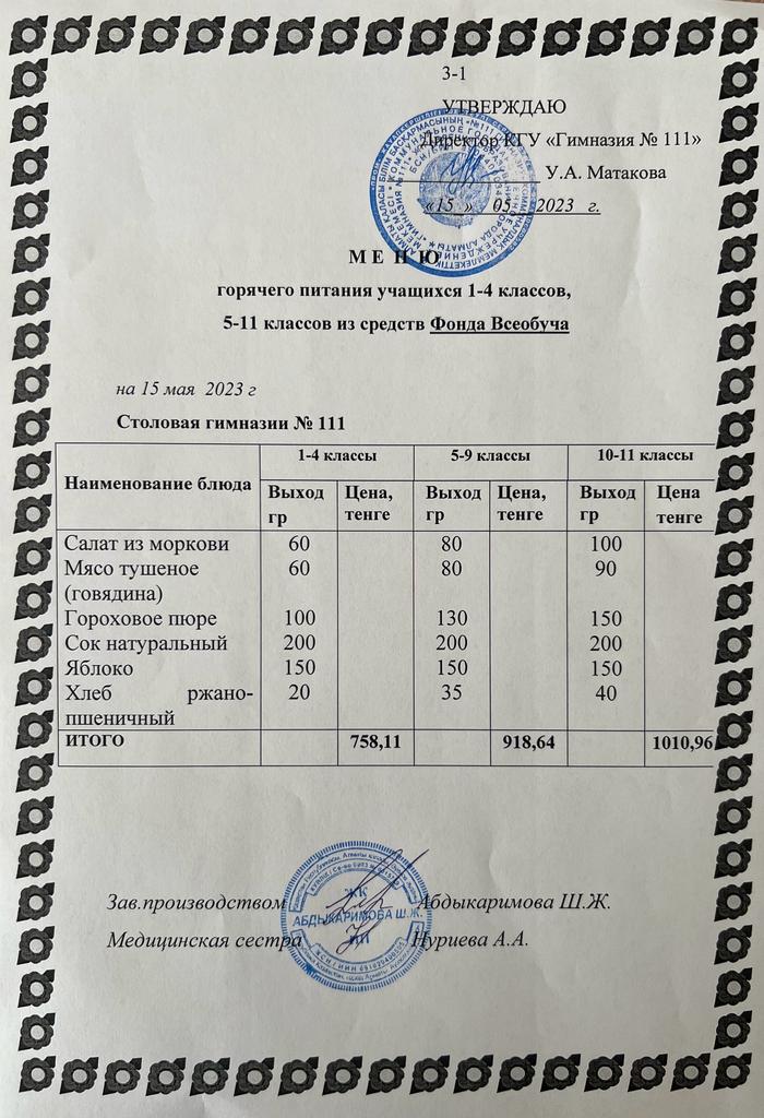КГУ «Гимназия №111» Управления образования г.Алматы