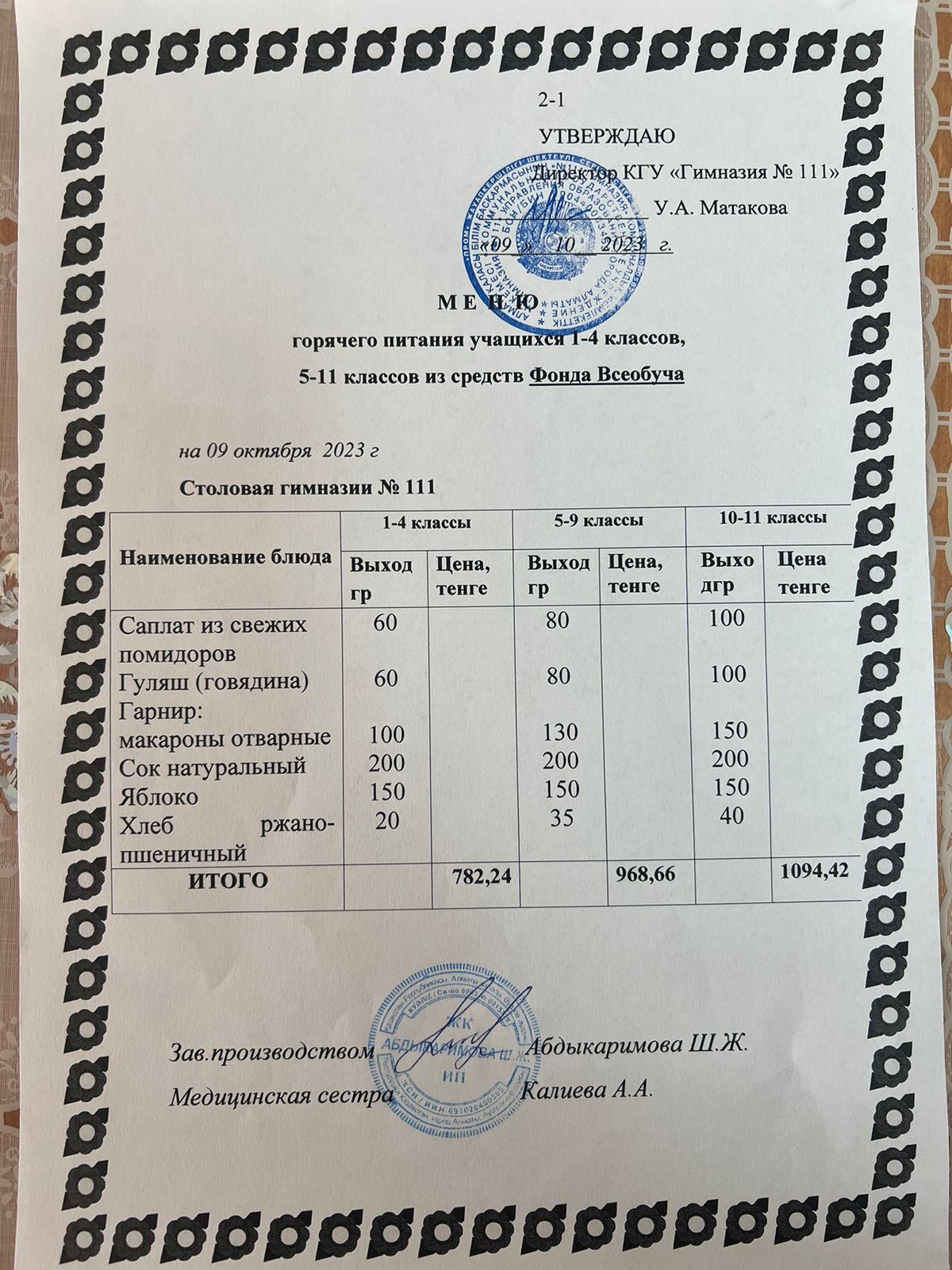 КГУ «Гимназия №111» Управления образования г.Алматы