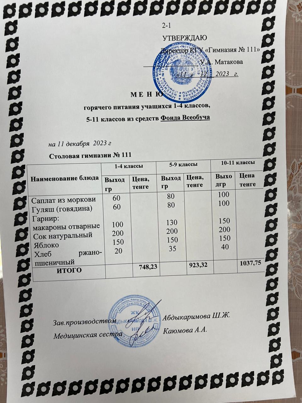 КГУ «Гимназия №111» Управления образования г.Алматы