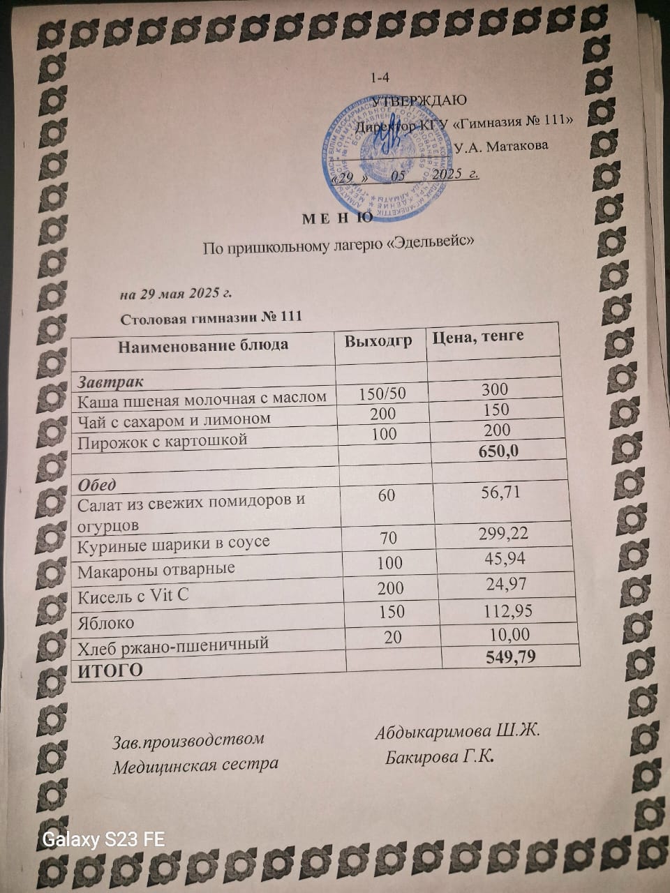 29 мамыр 2025 0 1 2 3 4 5 Меню По Пришкольному Лагерю 29.05.25 Осы беттің QR-коды:QR-код этой страницы: