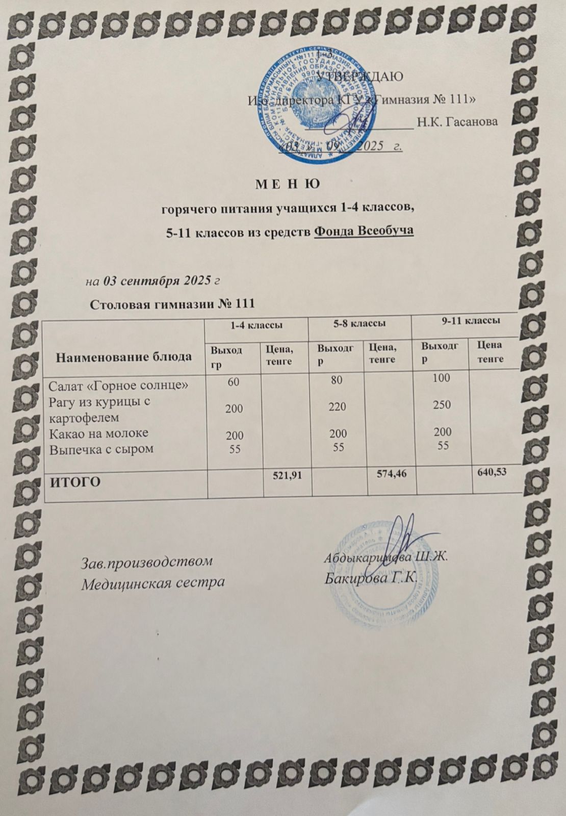 КГУ «Гимназия №111» Управления образования г.Алматы