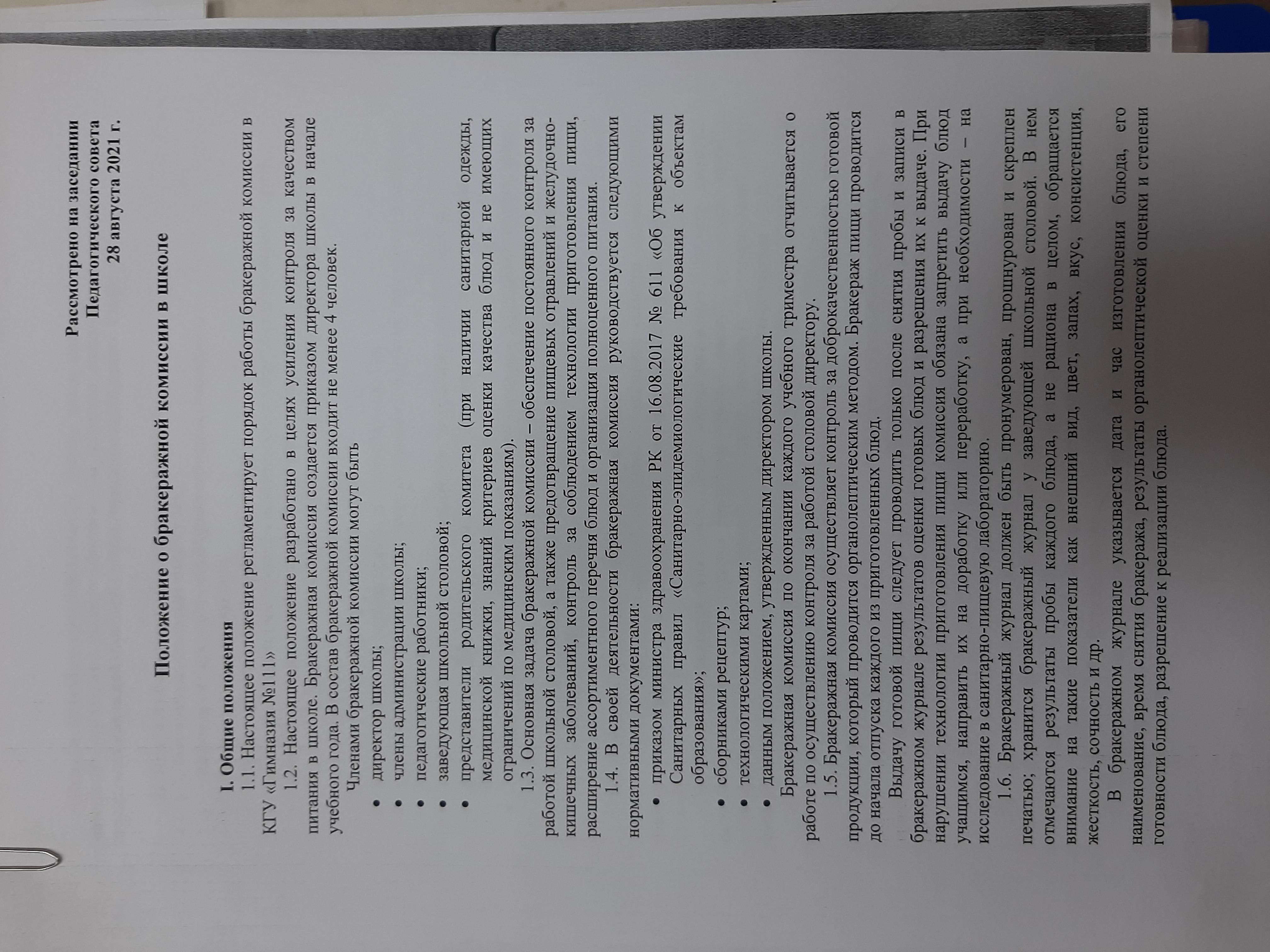 Қабылдау бөлімі :
