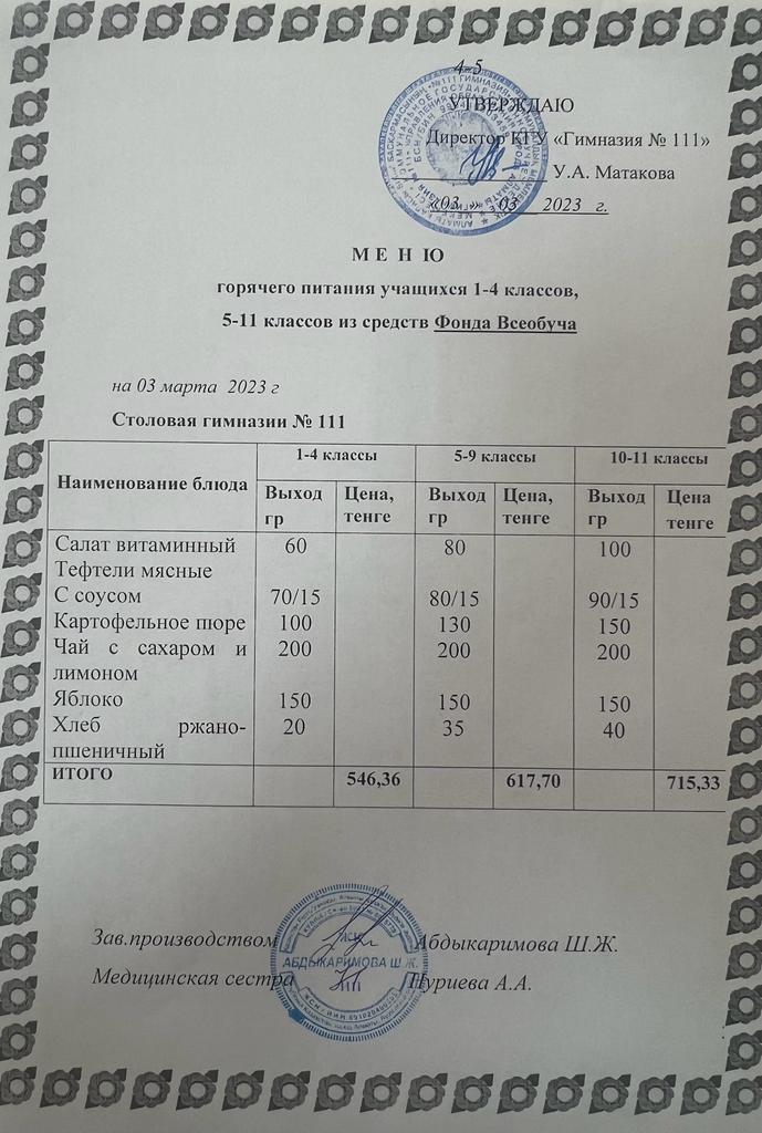 меню » КГУ «Гимназия №111» Управления образования г.Алматы