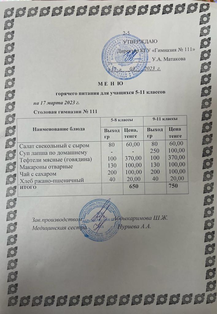 КГУ «Гимназия №111» Управления образования г.Алматы