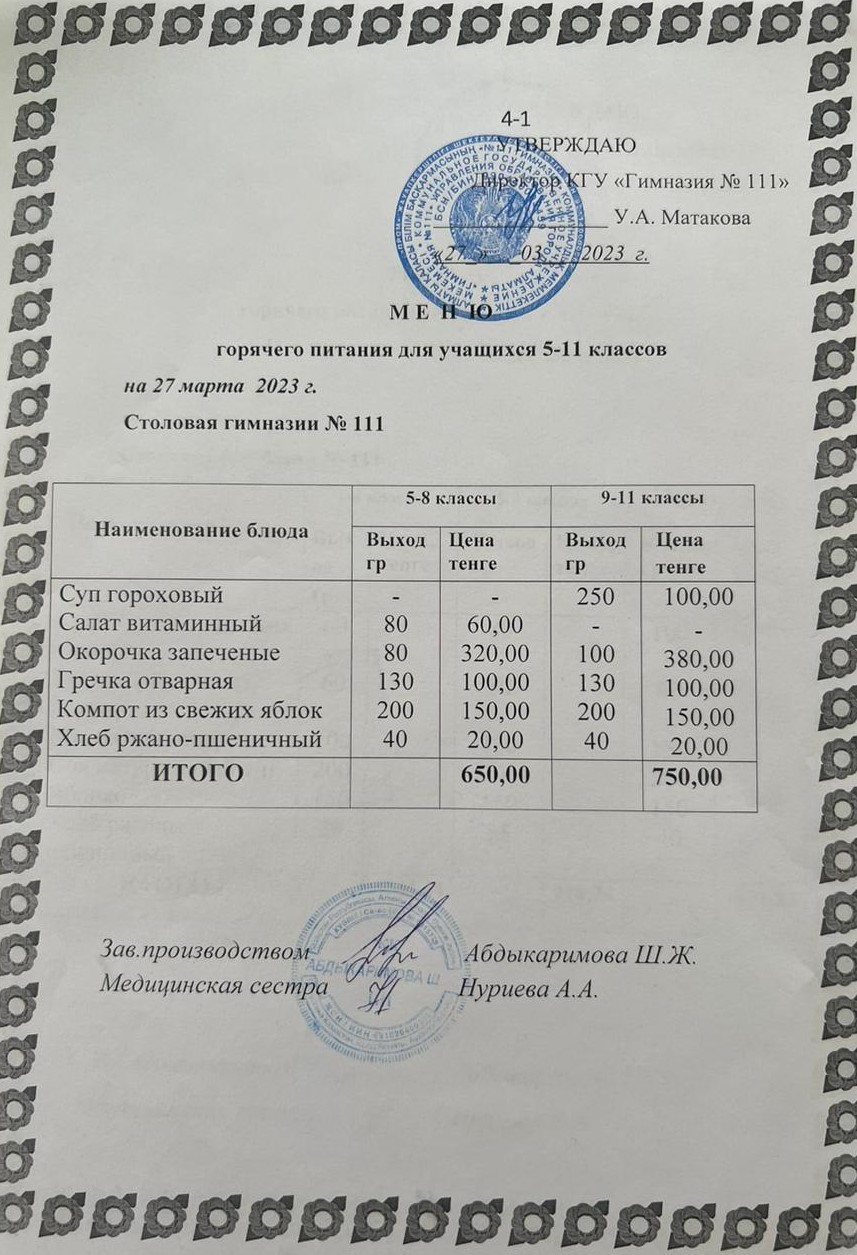 КГУ «Гимназия №111» Управления образования г.Алматы