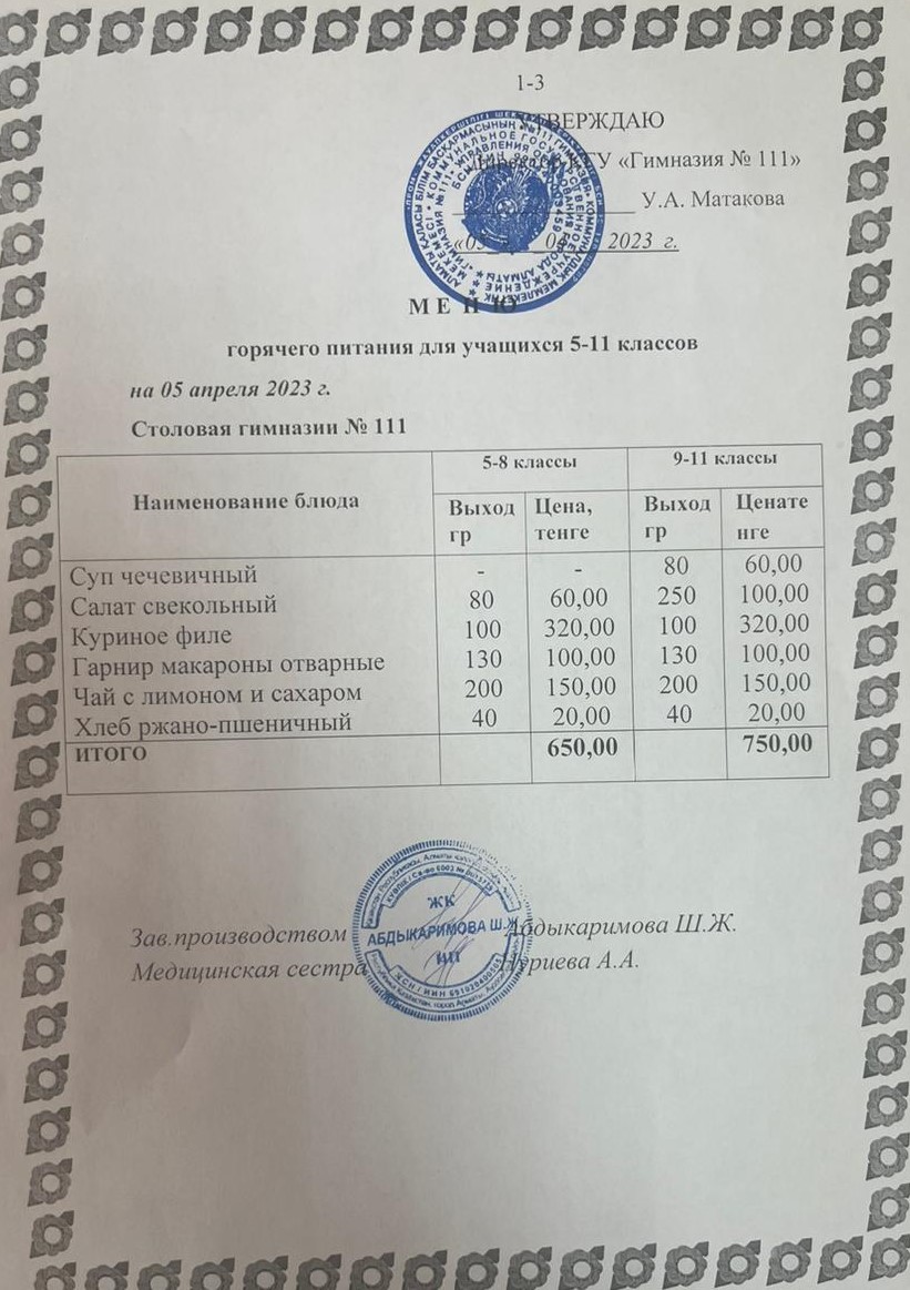 КГУ «Гимназия №111» Управления образования г.Алматы