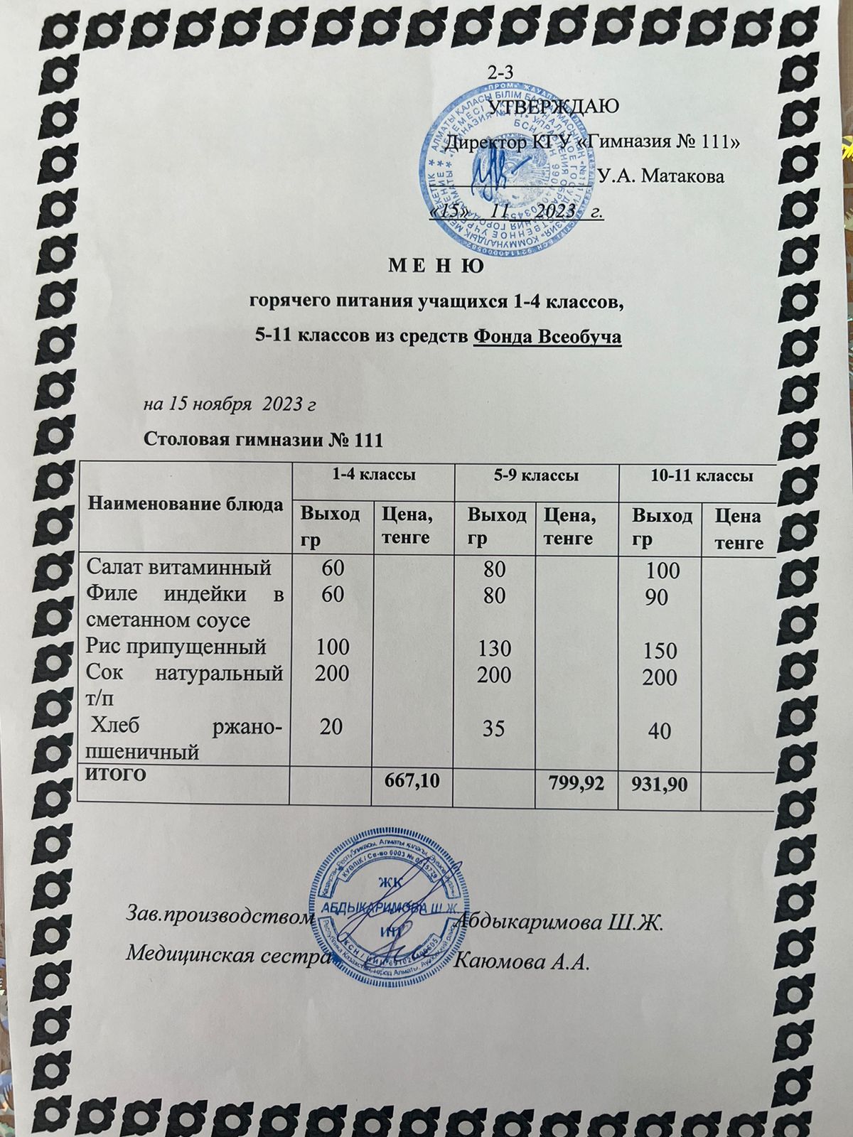 Меню на 15.11.2023