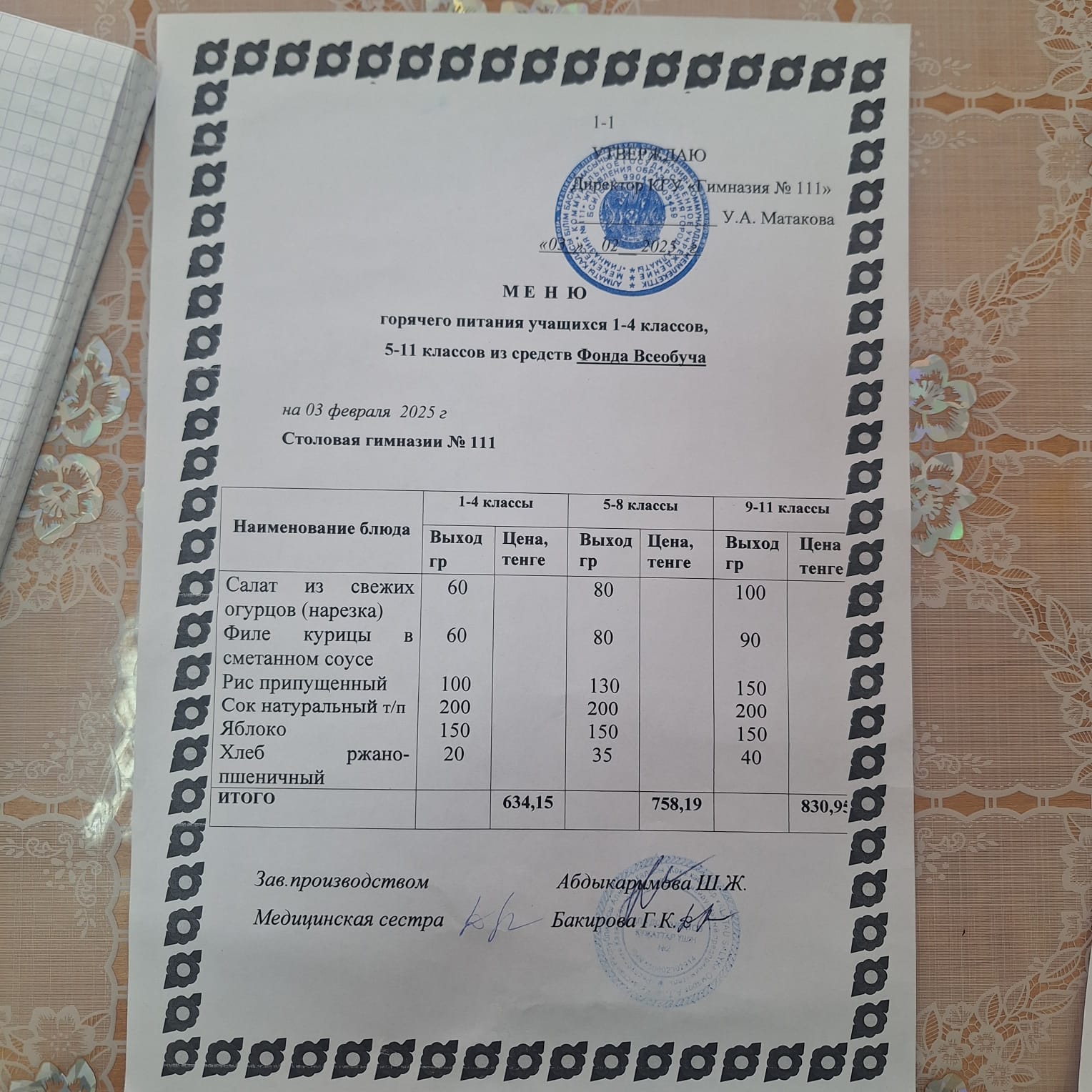 Меню на 03.02.2025