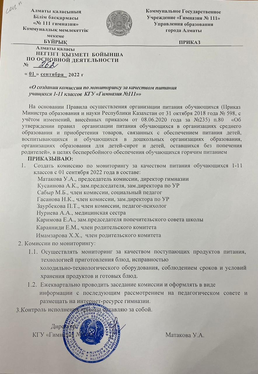 01 сентябрь 2022 0 1 2 3 4 5 Приказ о создании комиссии мониторинга питания Осы беттің QR-коды:QR-код этой страницы:
