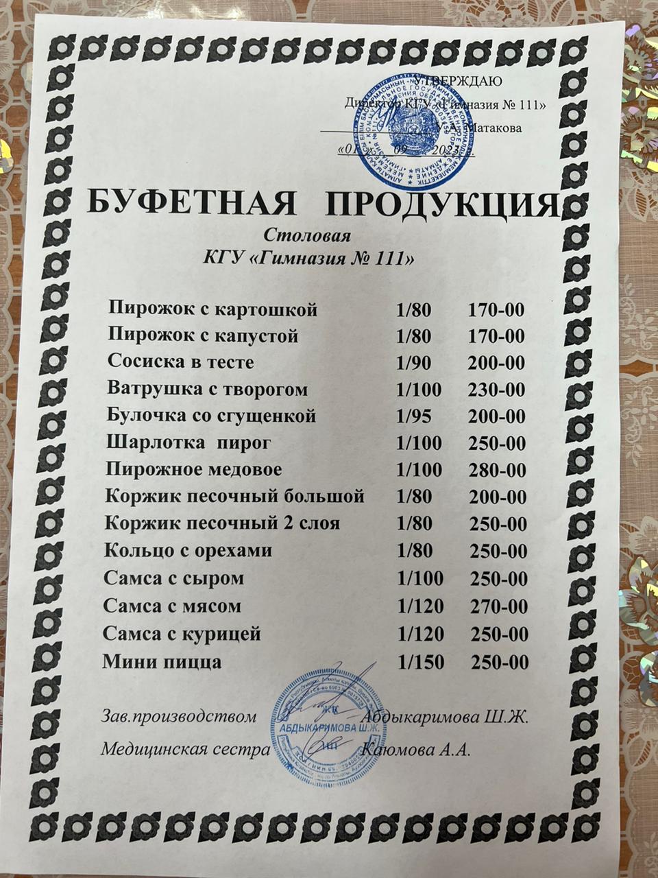 Буфетная продукция на 2023г